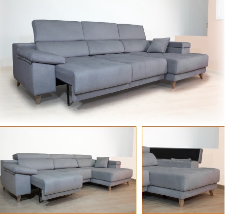 El sofá puede hacerse con o sin chaislong (lineal) y en diferentes medidas para adaptarse a cualquier estancia. También tiene muchas opciones de telas anti manchas. Los asientos y respaldos son desenfundables.