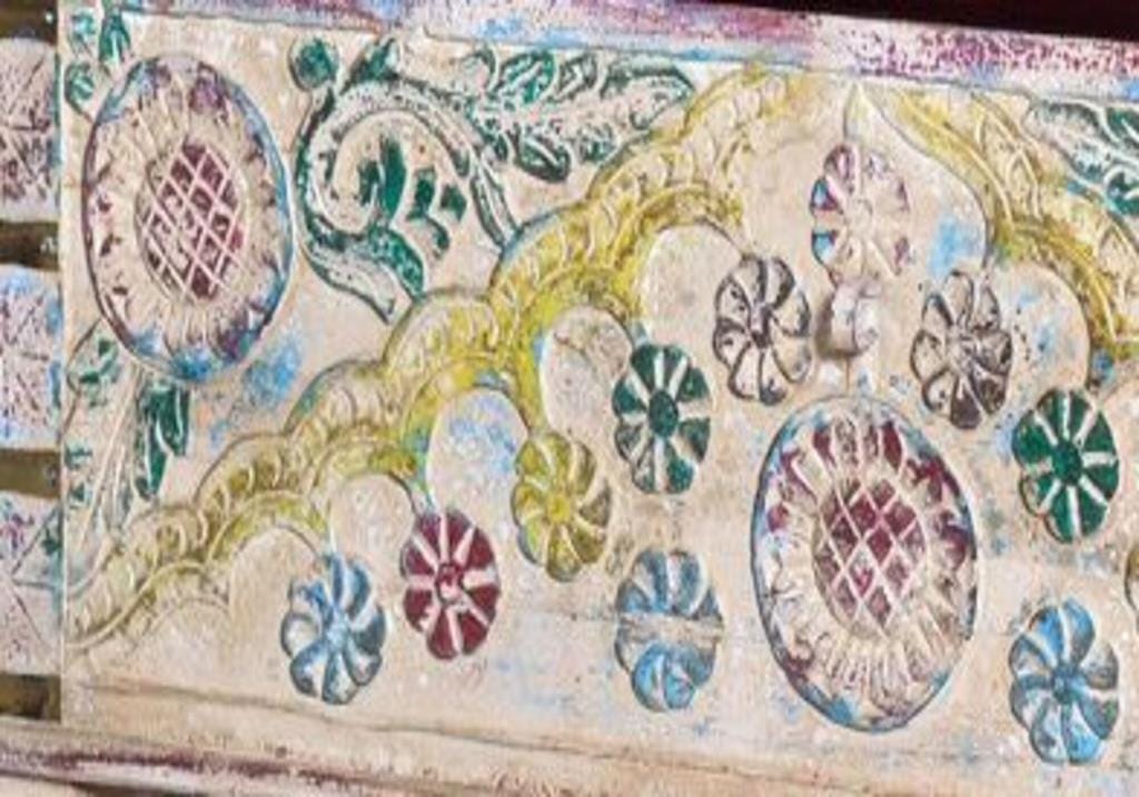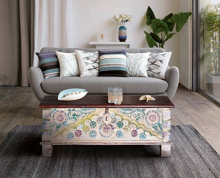BAUL EN MADERA DE MANGO CON APERTURA SUPERIOR, DETALLES EN BRONCE.