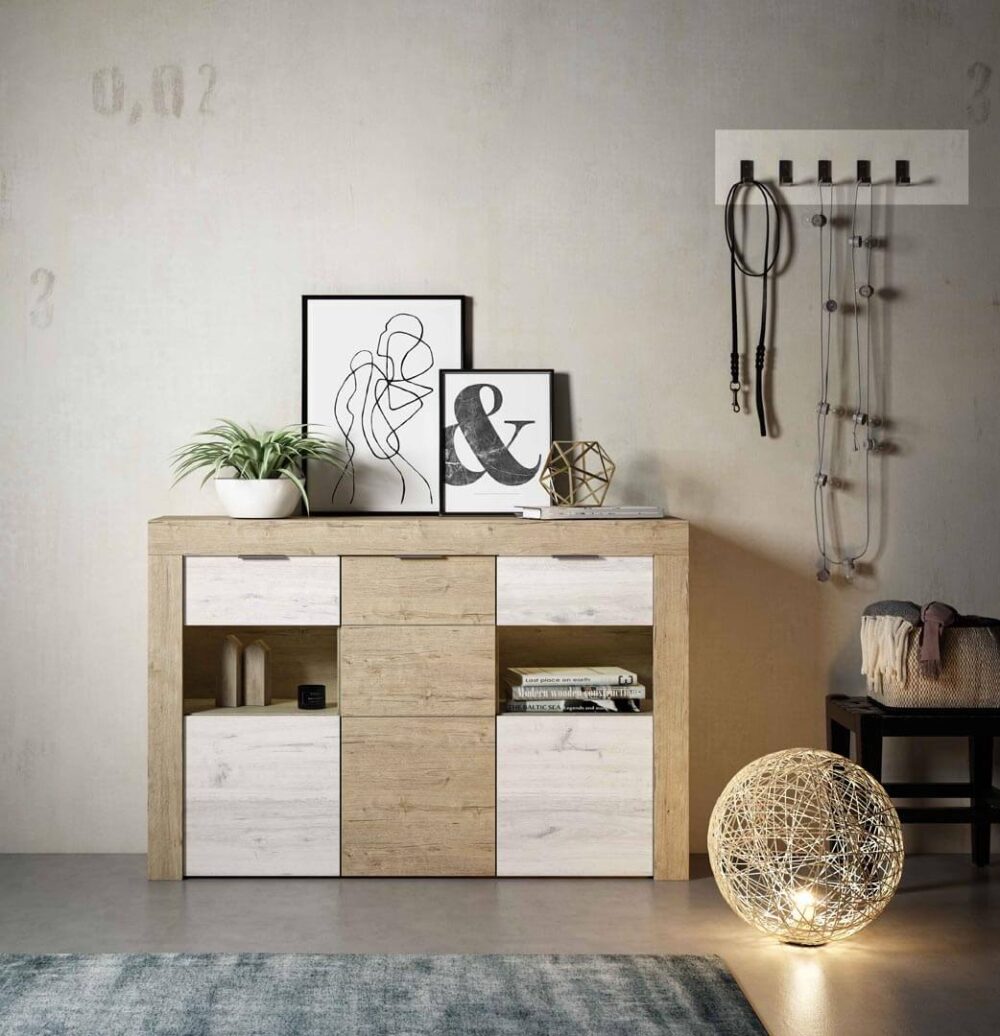Aparador de 140cm con 2 puertas laterales con cristal y una puerta central de madera disponible en 100cm, 140cm y 180cm con muchos colores combinables entre sí