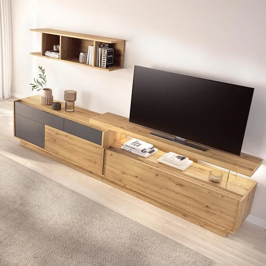 Mueble de salón moderno de 300cm modular con opción de añadir o quitar módulos o patas, cambiar de medida y con opción de cambiar de colores para poder hacer una composición de mueble única para ti.