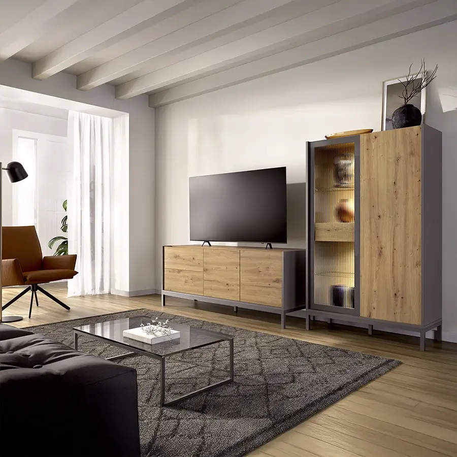 Mueble de salón moderno de 232cm modular con opción de añadir o quitar módulos o patas, cambiar de medida y con opción de cambiar de colores para poder hacer una composición de mueble única para ti.