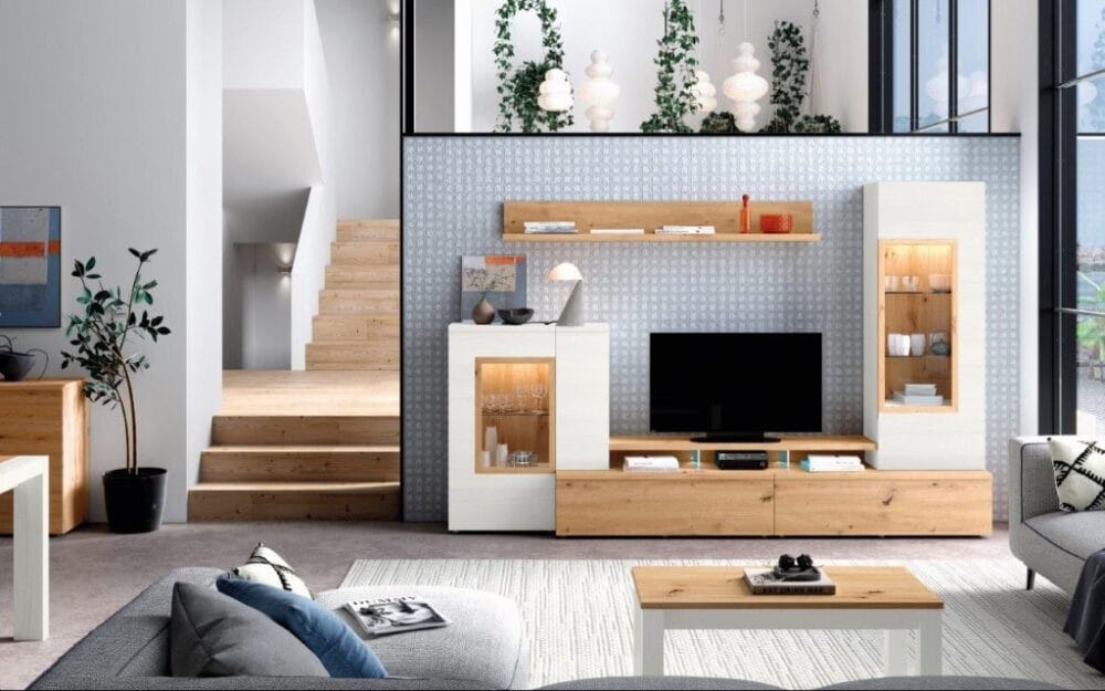 Apilable moderno de 300cm en color Polar y Artisan con 1 cajón y es resto todo puertas puertas.