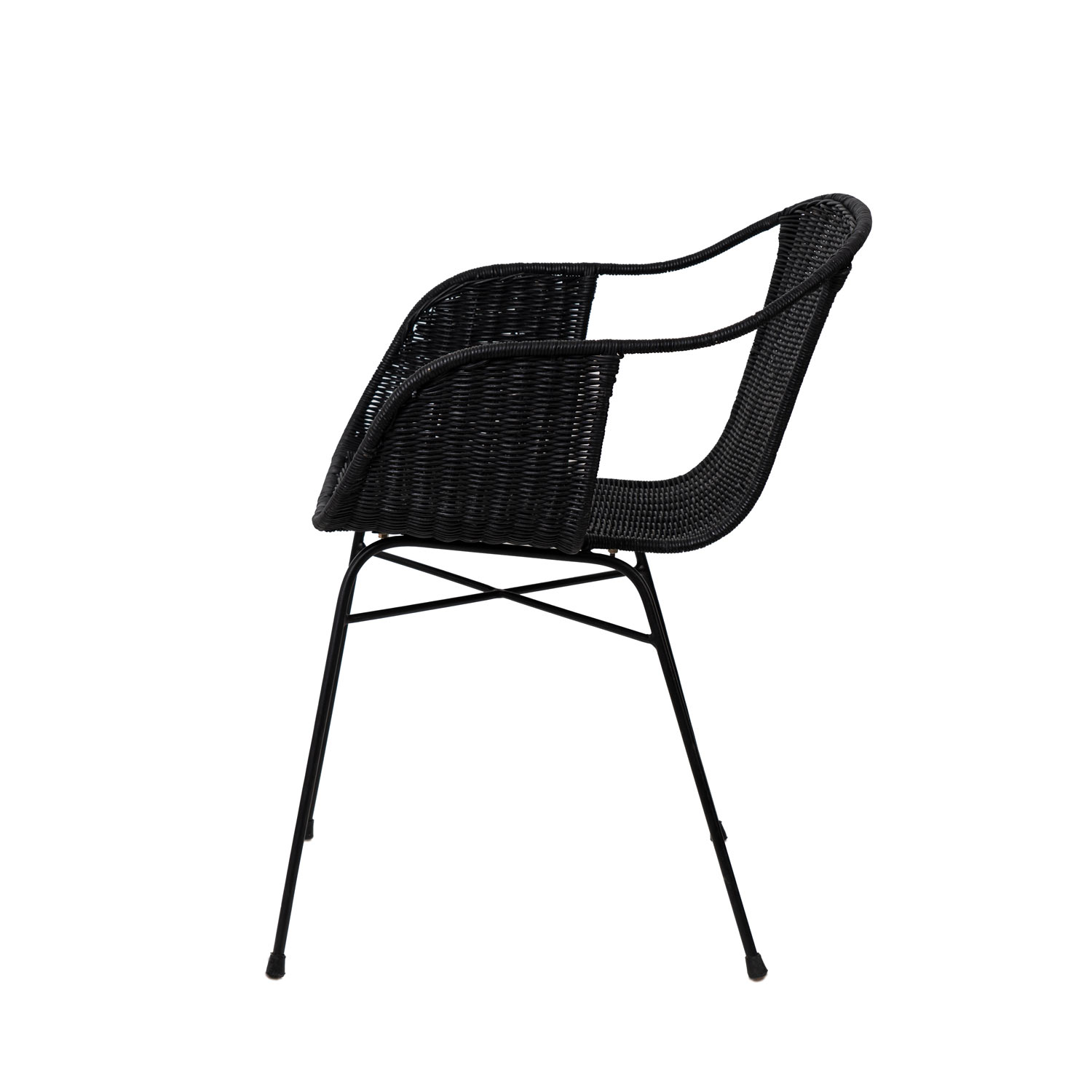 Su estructura, fabricada en ratán de color natural, aporta una sensación de frescura y ligereza, mientras que sus patas de hierro en acabado negro brindan estabilidad y un atractivo contraste visual.