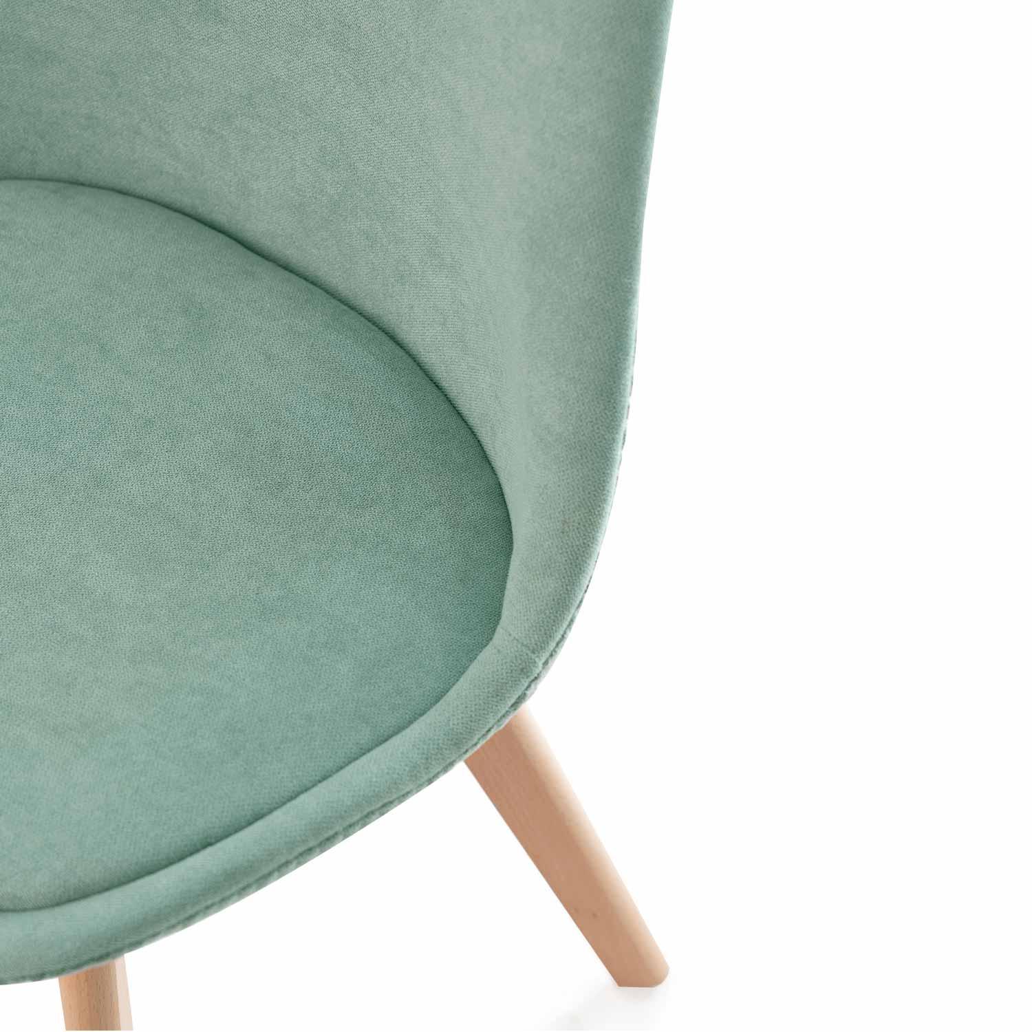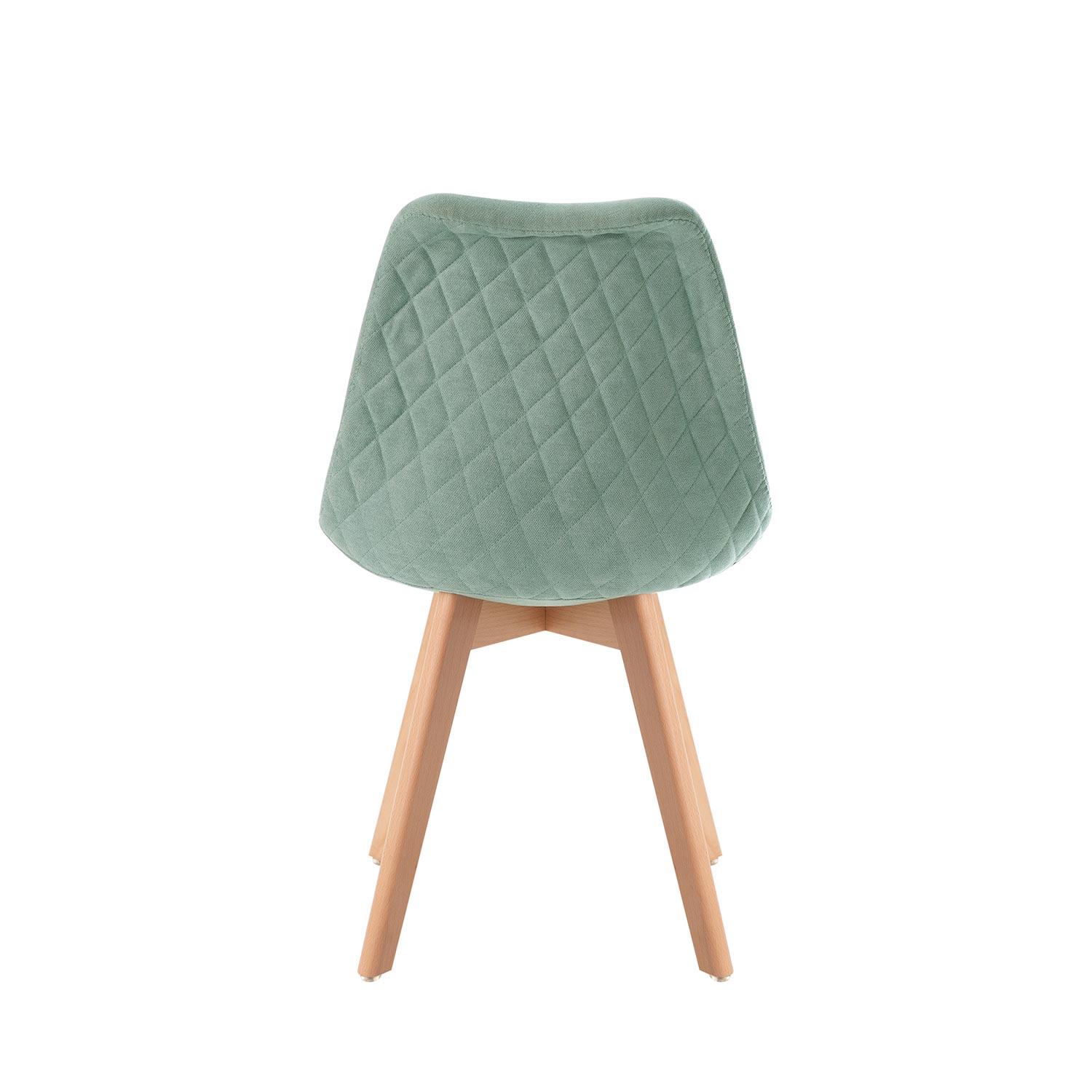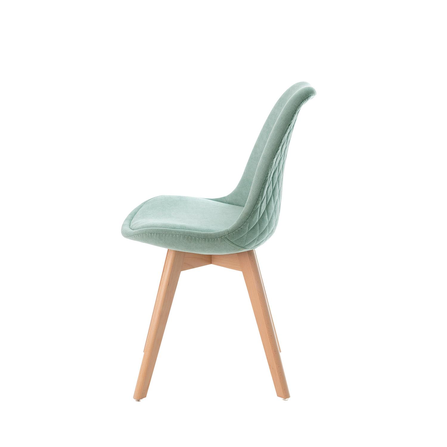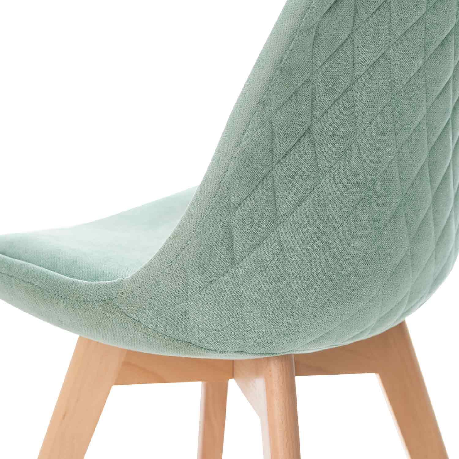 Esta pieza elegante combina un diseño minimalista con una simplicidad y elegancia inigualables. Su respaldo, tapizado en un elegante color menta con un grabado en forma de rombos en la parte trasera, y su asiento acolchado proporcionan una comodidad excepcional.